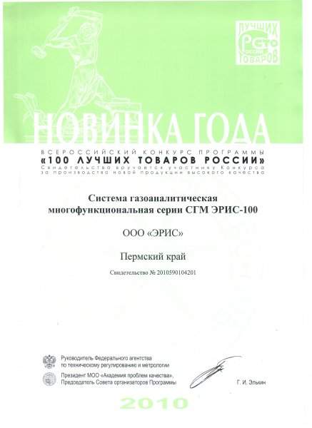 Группа компаний «Эрис» - дипломант «100 Лучших товаров России 2010»